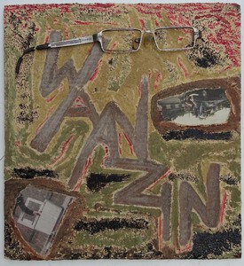 "It was finished, yet, something had to be done. So now, it is back to an unfinished state, or what? (Que)" (mixed media, board, wood, paper, paint, in private collection)