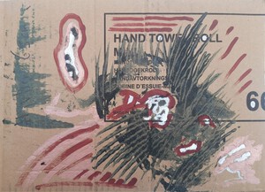 mixed media on carton from box.