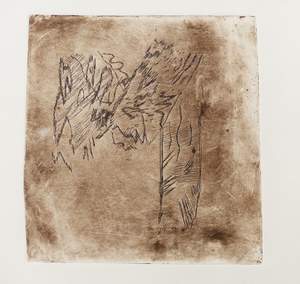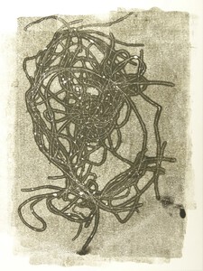 2022While and when seeking the core of senses / the nucleus of flashes / the pith of a posture or / the gold jar // and even more / the skeleton itself // It must to be realized / that the scratches on the surface / tell little about the content. monoprint