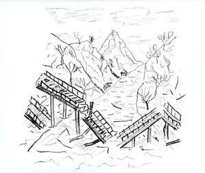 2022The bridge seen as the backbone / of life per se. Stone lithography (edition four prints) image 20x20 cm