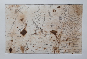 2021"remnant of old zinc / scratches a nail with sharp point // the impression of a stay / once, somewhere, for later." cold needle graphics