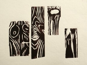 2023The gouge did cut through layers of wood / leaving a heap of shavings and/ elements next to or on top of another. (woodcut)
